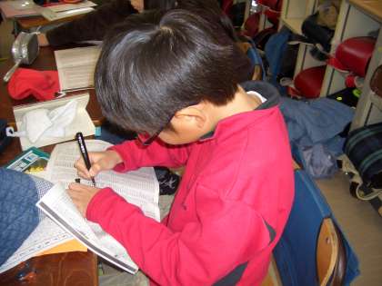 4年生の教室では、“教科 日本語”百人一首を暗記していました。何種おぼえたでしょうか。子どもの中には、先生からもらった資料・・・ほとんどの歌に赤いマーカーがついていました。