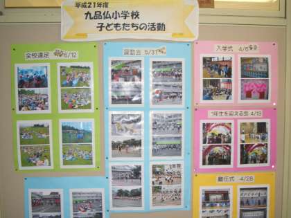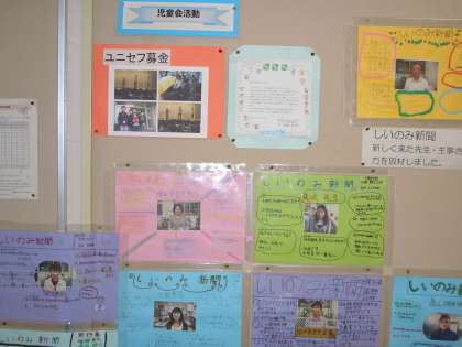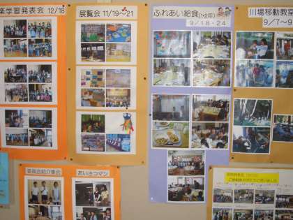 職員室の掲示板には、今年度の子ども達の活動(教育活動)の様子が掲示されています。