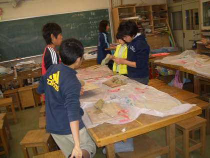 6年生は、“図工”粘土の学習をしていました。やわらかくするために、いろいろと工夫していました。