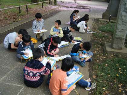 4年生は、四季を通して植物の様子を調べます。今日は浄真寺で自然の様子を観察しました。クラス全体では、大きないちょうを見ていくことにしました。浄真寺までの行き帰りも整然と歩くことができました。