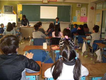 3年生の教室では、“朝の会:1分間スピーチ”・・・3年生になると、話す内容をいろいろと工夫するようになっています。