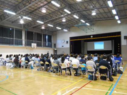 本日、保護者全体会を開催しました。土曜日のため、多くのお父様にも参加いただきました。