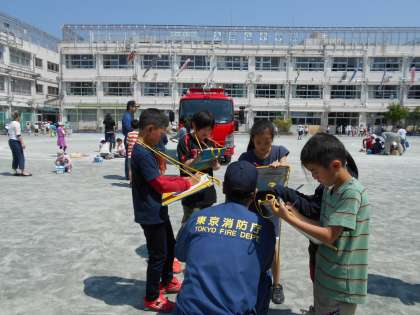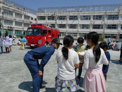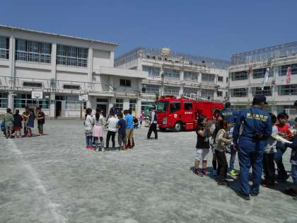 4年生は、社会科で、安全なくらし「消防の仕事と人々の協力」を学習しています。今日は1−3年生の働く消防写生会で、消防署・消防団の方々が来てくださったので、事前に考えた質問に答えていただきました。