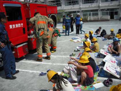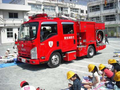 見事な晴天に恵まれた消防写生会になりました。消防車の大きさやおもしろい機械に子どもたちは大喜びでした。消防車の赤色がまぶしい写生会でした。