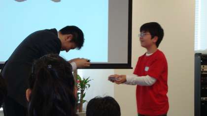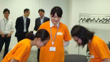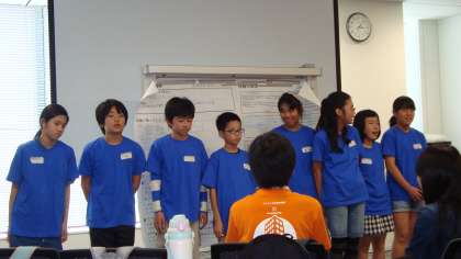お兄さん、お姉さんに、社会人としてのマナー、挨拶の仕方、名刺交換の仕方、オフィス見学など、ひとつひとつ丁寧に教えていただき、働く人の気持ちも知ることができました。最後は、1日学んだことを、グループごとにプレゼンテーション。自分たちの感じたこと、思ったことを一人一人が発表しました。