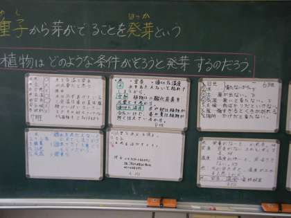 「植物はどのような条件がそろうと発芽するのだろう」という学習問題について考えました。