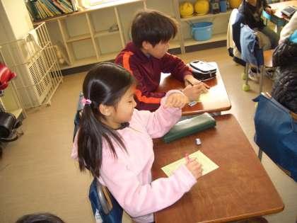 3年生の教室では、“朝の会の前”を利用して、“2月のめあて”を短冊に書いていました。3年生のまとめも順調に進んでいます。静かに、真剣に考えている姿・・・。