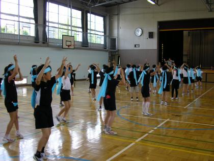 低学年は、「龍神太鼓」、中学年は、「じょんがらまつり」、高学年は、「組体操」の練習風景です。上級生が下級生に、同級生同士が教え合い、励まし合う場面がいろいろなところで見られています。小規模校ならではの・・温かく、ほほえましい姿です。
