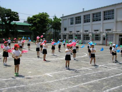 九品仏小学校では、今、5月31日(土)運動会へ向けて、教師と子ども達が、練習に励んでいます。練習のひとコマを紹介します。