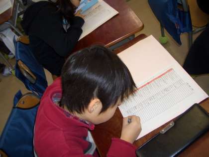 1年生に教室では、“読書活動”のまとめ・・・自分の読んだ本にマークを付けていました。画面の児童は、38冊読み終わり、あと1冊で・・・・1ページが終了です。