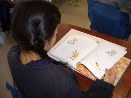 1年生の“朝読書タイム”の様子です。子どもの中には、読書カード4枚目に入り200冊近く読んでいる子どももいます。