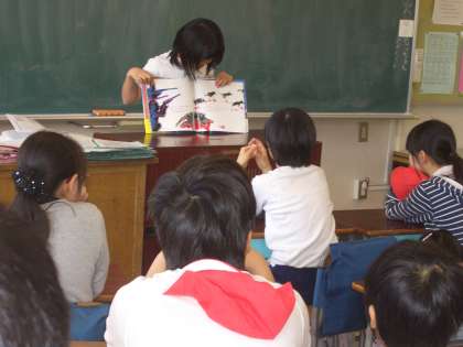 4年生の“朝読書タイム”は、代表の子どもが“読み聞かせ”をしていました。読む子どもも工夫し、聞く子どもたちも真剣に聞いていました。