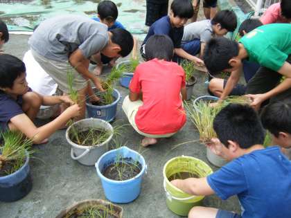 「おこめのひぐち」の樋口さんから、新潟から届いた稲をいただき、田植えを行いました。