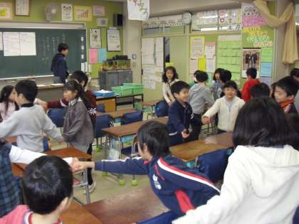 1年生の教室では、“歌で一日が始まります!”きれいな歌声で・・動作を入れて元気に一日がスタートしました。