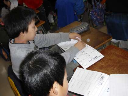 5年生の教室では、漢字テストの準備・・・学年まとめの漢字に取り組んでいます。