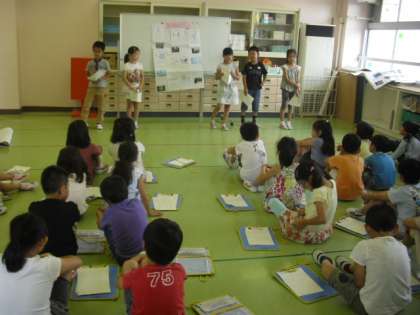 家で話す練習をしてきて、メモを見ずに友達の方を向いて話せる子もいました。他のグループの子も友達の発表を聞いて、理解をすることができました。