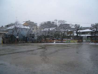 今朝は、“雪”が降っている中の登校でした。みんな寒さに負けずに元気に登校です!