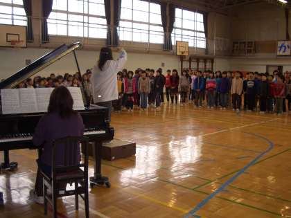 今日は、“音楽集会”が体育館でありました。“6年生を送る会”で歌う歌の練習です。曲目は、全校児童からのリクエストで、“歌を歌うわけ”です。2部合唱に分かれましたが、自然に子ども達がそれぞれのパートに分かれ、きれいな声で歌っていました。
