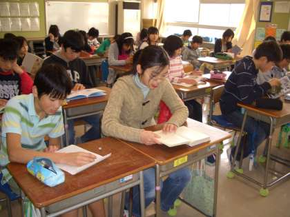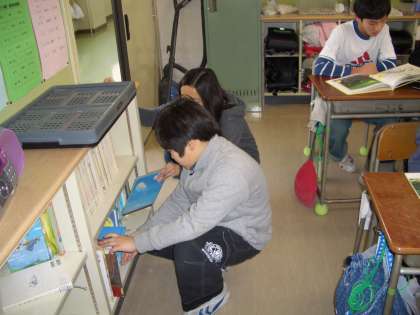 6年生の教室では、“読書タイム”静かに自分の興味のあるジャンルの本を選び、静かに読んでいました。