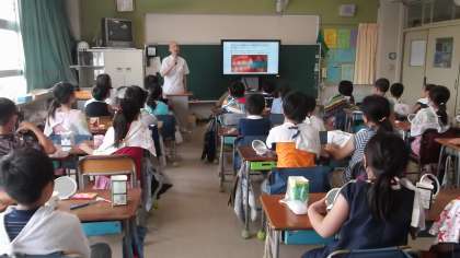 学校歯科医の高見澤先生が、4年生に「歯肉炎」について講話をしてくださいました。
