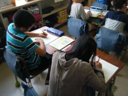 用意していただいたパネルやDVDをみながら、ごみの分別やリサイクルの過程を教えていただきました。子どもたちは、初めて知ったことを一生懸命ノートにメモしていました。