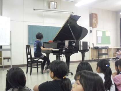 10日、昼休みに九品仏コンサートを行いました。2年生から6年生まで5組の演奏でした。たくさんの児童の前で緊張しながら、楽しみながら歌ったり、演奏したりしました。