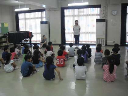 1年生は、リトミックの授業を仙田先生にしていただきました。