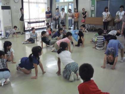 リズムに合わせて体を動かすことや仲間とリズムをそろえることの大切さについて学びました。