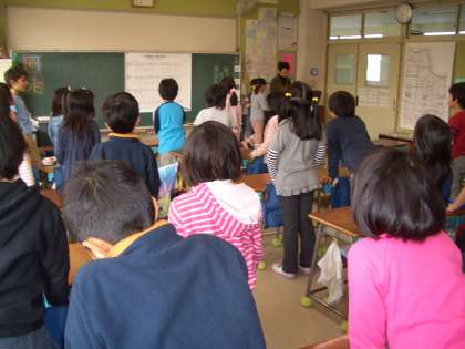 2年生の教室では、“朝の歌”担任の先生のオルガンの伴奏で・・・子どもたちが声をあわせて歌っていました。