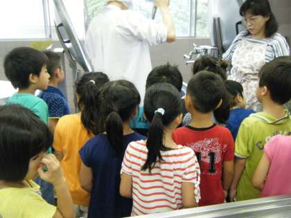 1年生は今まで毎日食べている給食はこのように作られるんだ、こんなに大きな釜を使うのか、と感動をしている様子でした。