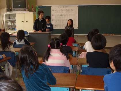 2年生の教室では、“朝の会”朝の歌が終わったあと・・・1分間スピーチをしてりました。2年生でも、何をどのように・・・話し方を工夫しています。