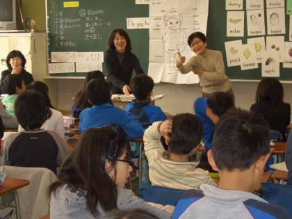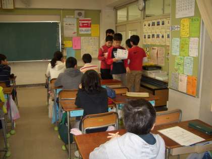 5年生の教室では、“朝の会”復習も・・・新しい学習にも積極的に取り組んでいました。興味や関心を持って学習していくことが、中学校の学習につながっていくのでは、ないでしょうか。