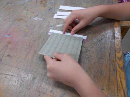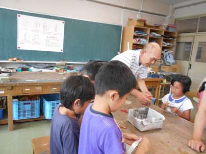 畳屋の佐原さんを講師に招いて、たたみを使ってのコースターづくりに挑戦しました。子どもたちは器用に仕上げていました。