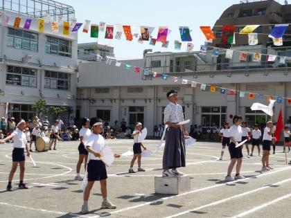 九品仏小の児童は200名弱ですが、応援合戦はとても盛り上がります。