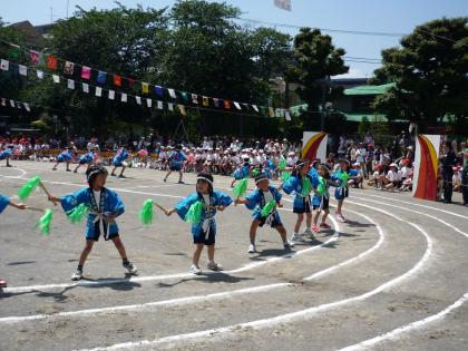 「龍神太鼓」(写真;左)では、練習の時から大きなかけ声をかけ、1年生におお手本となって活躍していました。