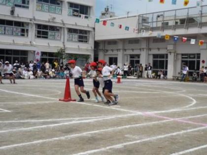 3年生「台風の目」(写真;左)。抜きつ抜かれつの大接戦。3回戦までもつれ込んだ対戦は、最後も大逆転で幕を閉じました。