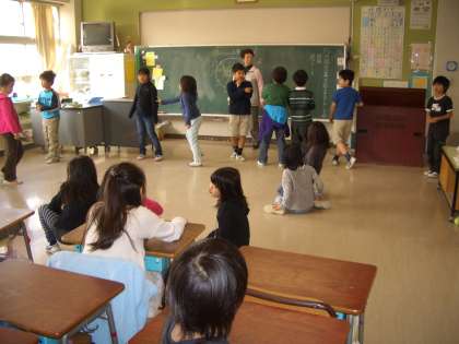 2年生の教室では、“6年生を送る会のリハーサル”先生の指導のもと、係の子どもを中心に練習していました。