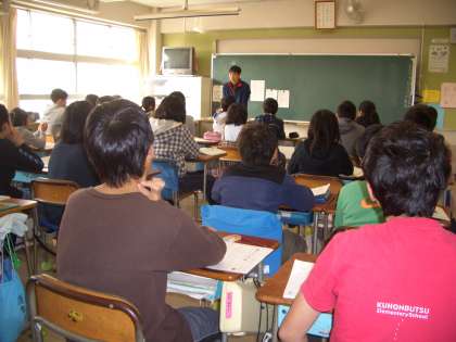 6年生の教室では、“社会科:ボランティア活動についての学習”・・先生が話す事例を聞いて、その場面を想像する子どもの様子など、みな真剣な授業態度です。