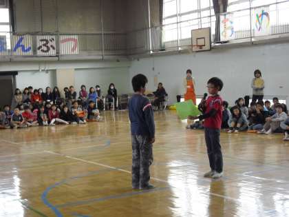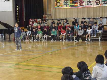 6年生から、“お礼の言葉”・・・在校生からの“プレゼント:縦割り班写真付カレンダー”・・・