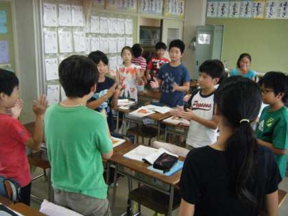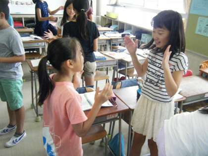 3の倍数の時に手をたたくグループと4の倍数の時に手をたたくグループに分かれて倍数の学習を行いました。