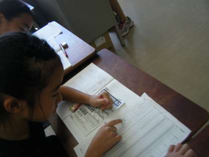 前回の授業では、自分の普段の生活から、ごみの分別や収集の方法について予想しました。今日は、その予想をもとに、近所の友達と同じグループになって、自分の住む家の収集日を、一覧表で確認しました。