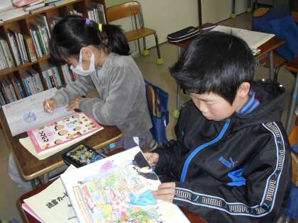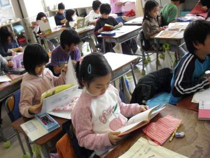 2年生の教室では、“学習のまとめ”課題が終わった子は、静かに読書・・・