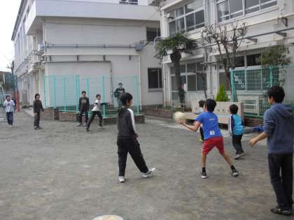 天気が回復して、子どもたちが校庭でさまざまな遊びをしていました。