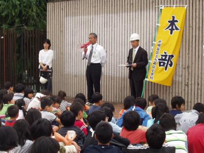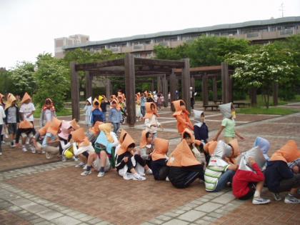 6月の避難訓練は、火災発生後、学校にいることが危険となった場合を想定し、二次避難場所である、ぽかぽか広場へ避難する訓練です。