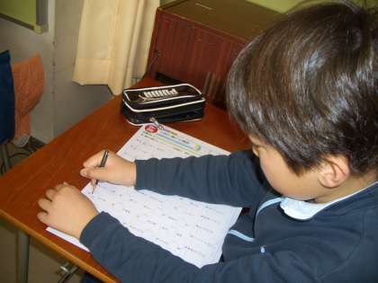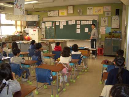 1年生の教室では、漢字のまとめを丁寧に指導していました。
