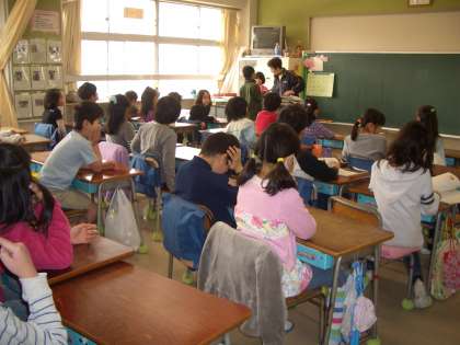 3年生の教室では、3年生のまとめの漢字テストに取り組んでいました。