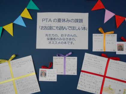 PTAの皆さんが、「本を通してつながろう 子供と親と先生と」をテーマにおすすめの本のポスターを作成してくださいました。学校の玄関に掲示されています。是非、ご覧ください。