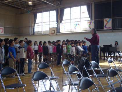 卒業式へ向けて・・・卒業していく6年生へ・・・心をこめて歌う練習に励んでいます。