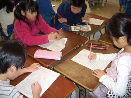 2年生の教室では、“朝自習:答え合わせ”今日は、グループで行っていました。