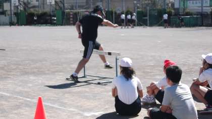 そのあと、ハードル走、高跳び、幅跳びとに分かれて練習を行いました。体育の先生にコツを教わり、充実した1時間となりました。